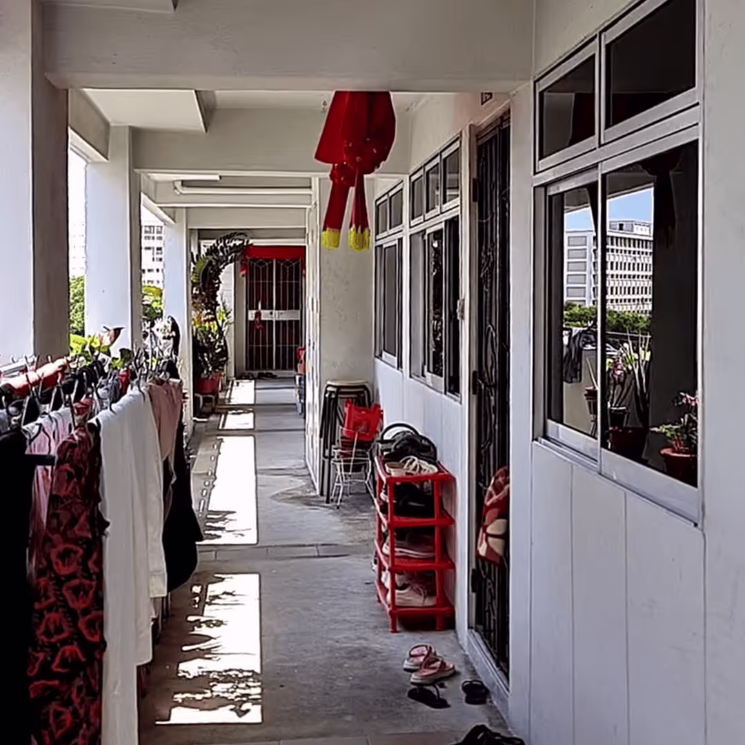 Positing that a space likened to the porch at a home’s entrance that can serve as a space for communal conversation and contemplation is missing, and resonating with Peter Buchanan’s idea that the architectural spaces in the neighbourhood can be a place for self expression and connection with others, both films shed new light on the HDB corridor.